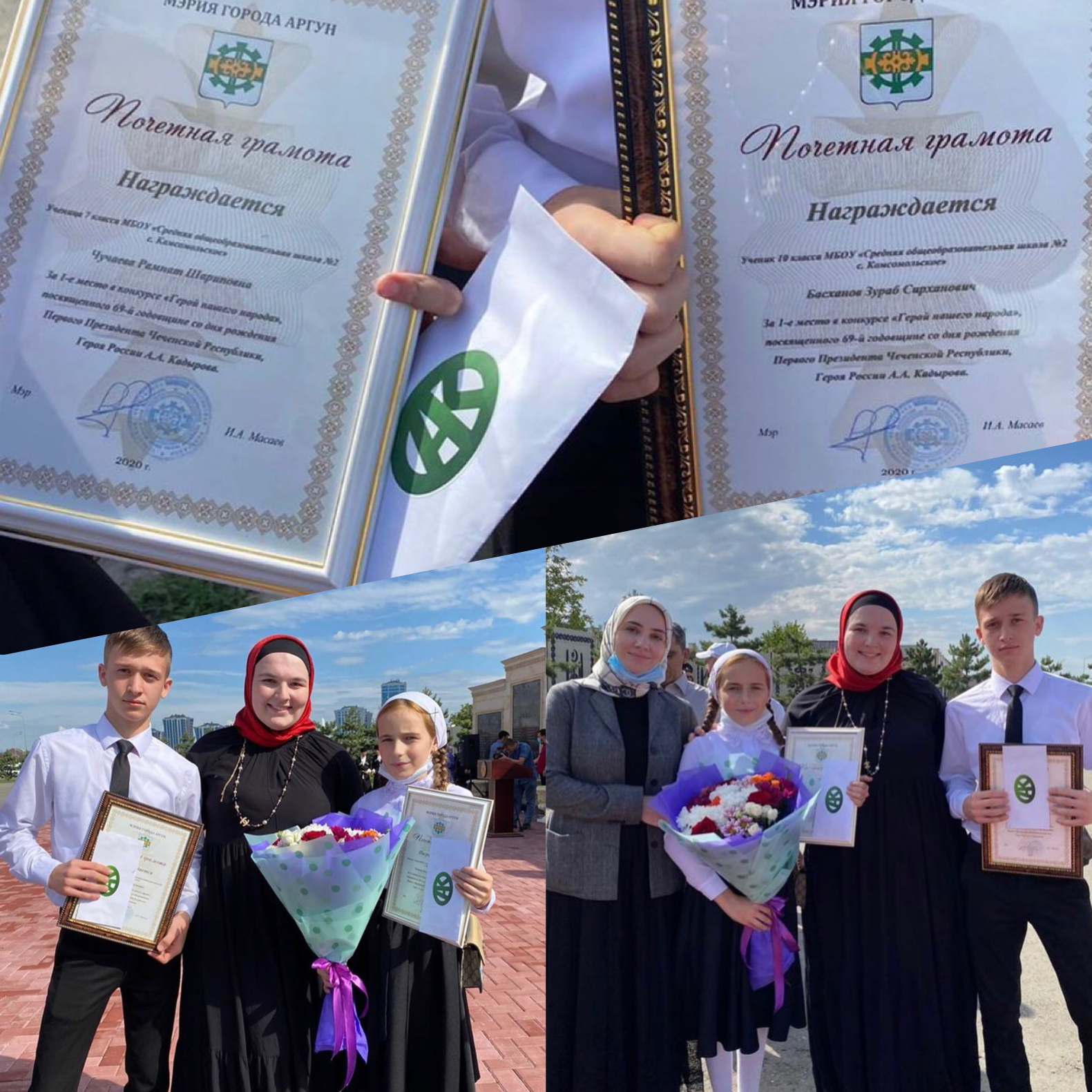 25.08.2020Наши учащиеся Чучаева Рамнат (7 а кл.) и Басханов Зураб (10 кл.) 25.08.2020г. заняли I место в городском конкурсе видеороликов «Герой нашего народа», посвященного 69-й годовщине со Дня рождения Первого Президента Чеченской Республики, Героя России А.А. Кадырова, который проходил на странице официального аккаунта Мэрии городского округа город Аргун.